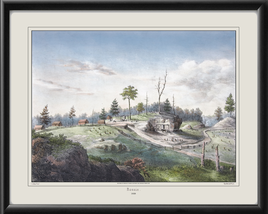 Restored view of Rossie, St. Lawrence County, New York, 1838 by Salathiel Ellis