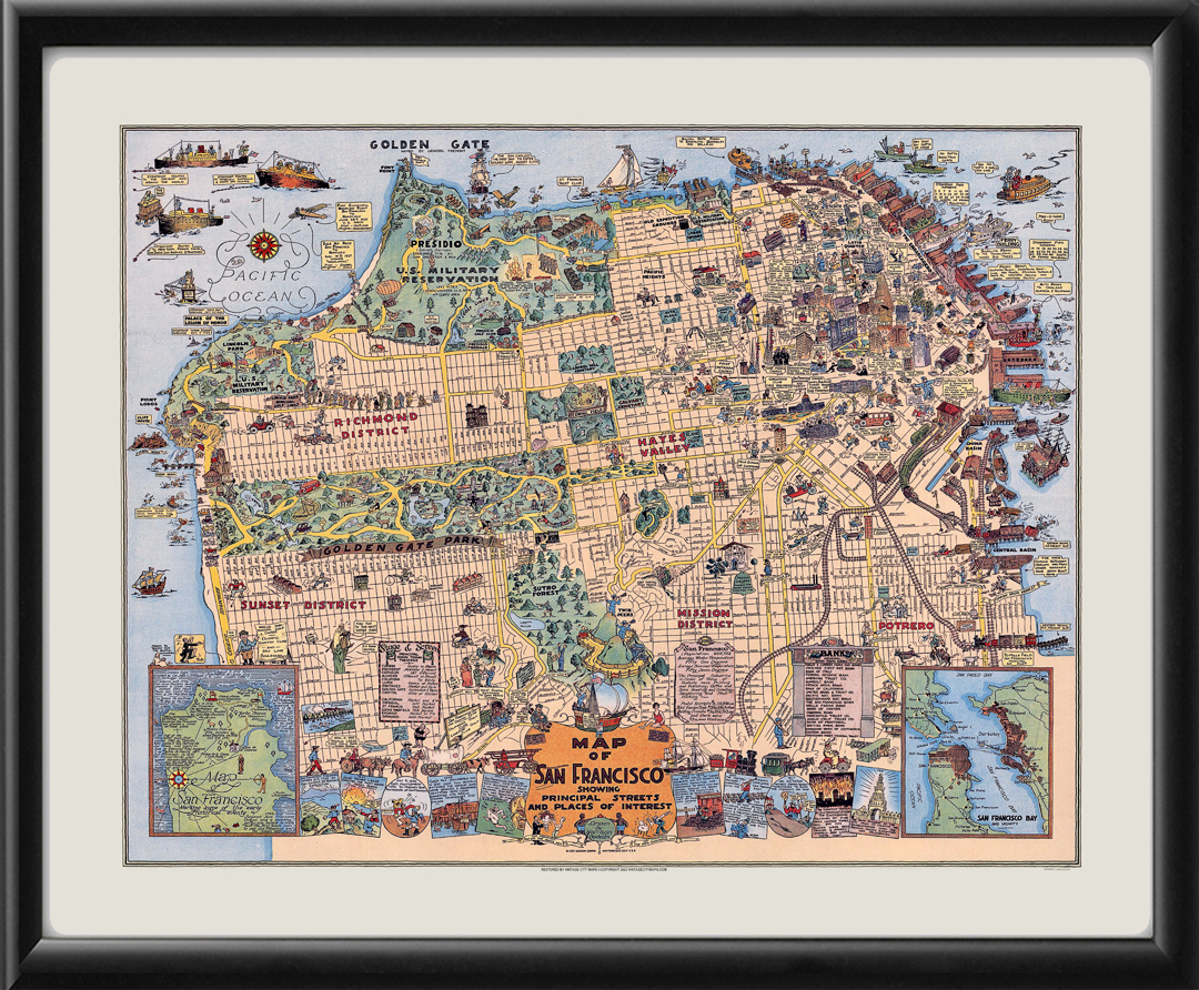Restored bird’s eye view map of San Francisco, California, 1927 by Harrison Godwin, showing principal streets and places of interest.