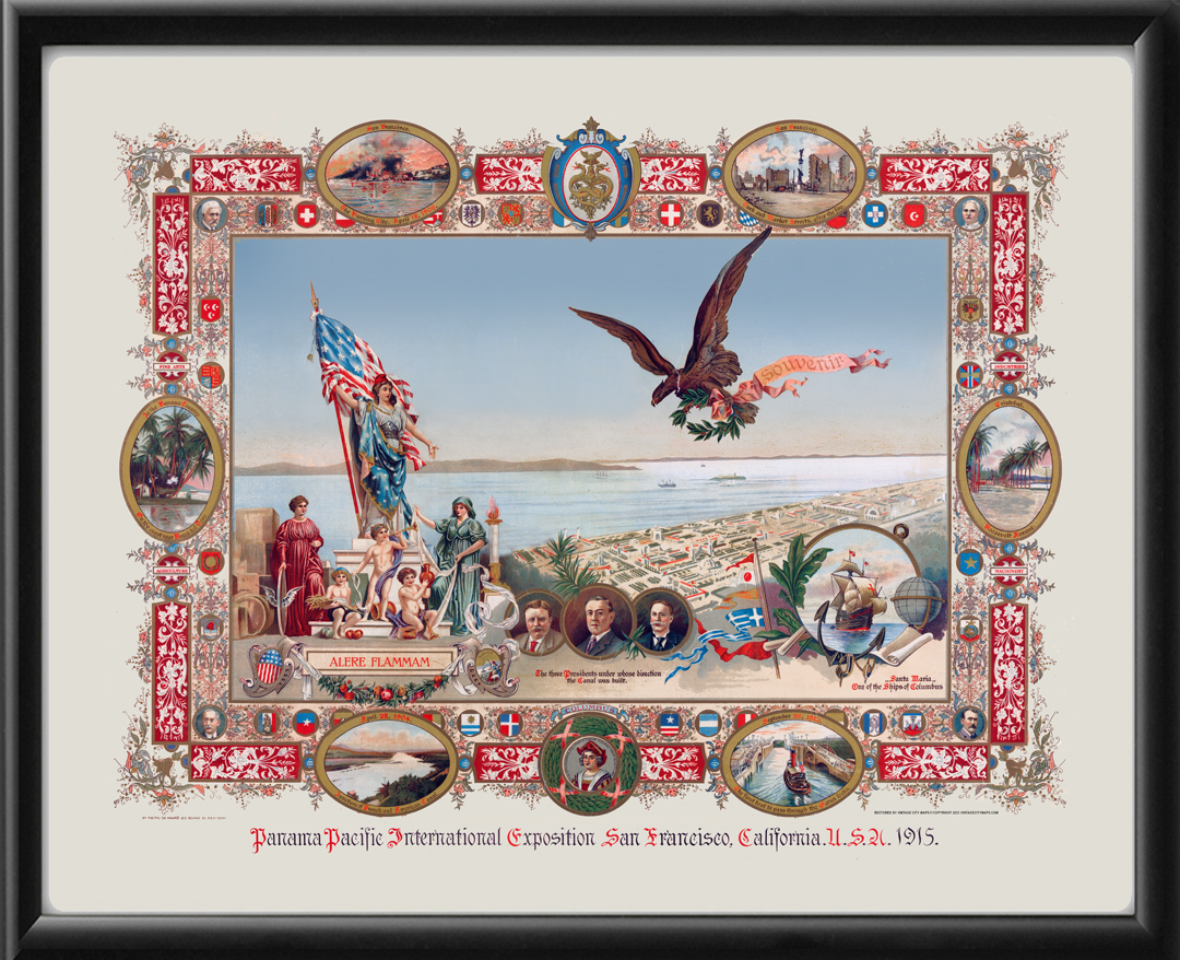 Restored bird’s eye view of the Panama-Pacific International Exhibition, San Francisco, California, 1915, by Pietro de Mauro.