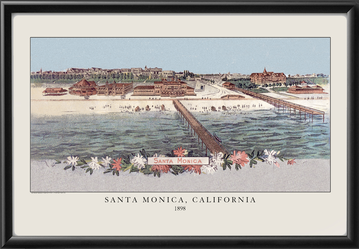 Restored bird’s eye view of Santa Monica, California, 1898. Artist unknown.