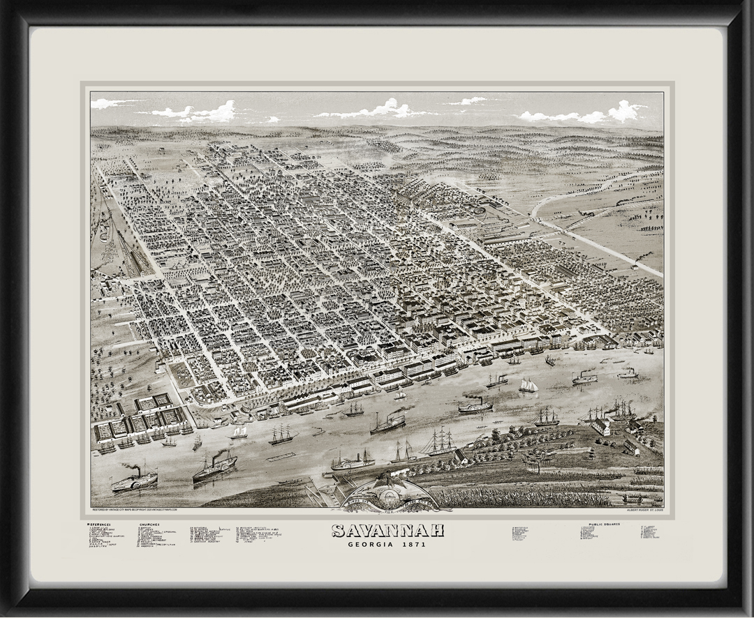 Restored bird’s eye view map of Savannah, Georgia, 1871 by Albert Ruger.