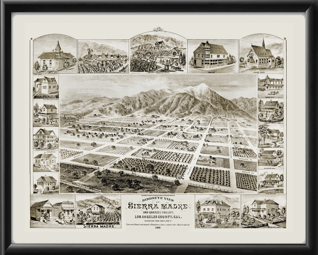 Restored bird’s eye view of Sierra Madre, California, 1888 by Henry Steinegger.