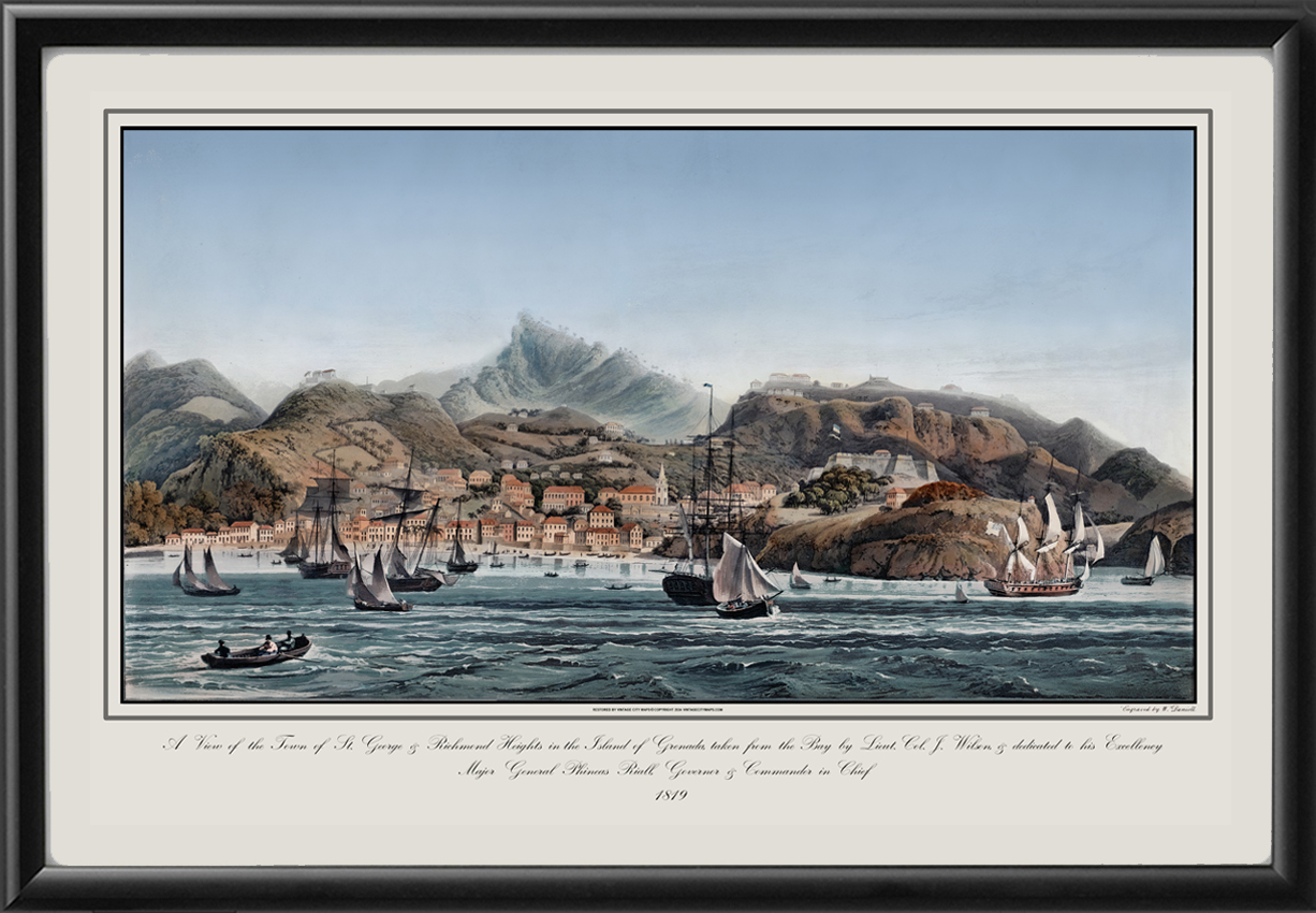 Panoramic view of the town of St. George’s and Richmond Heights on the Island of Grenada, taken from the Bay, 1819 by William Daniell