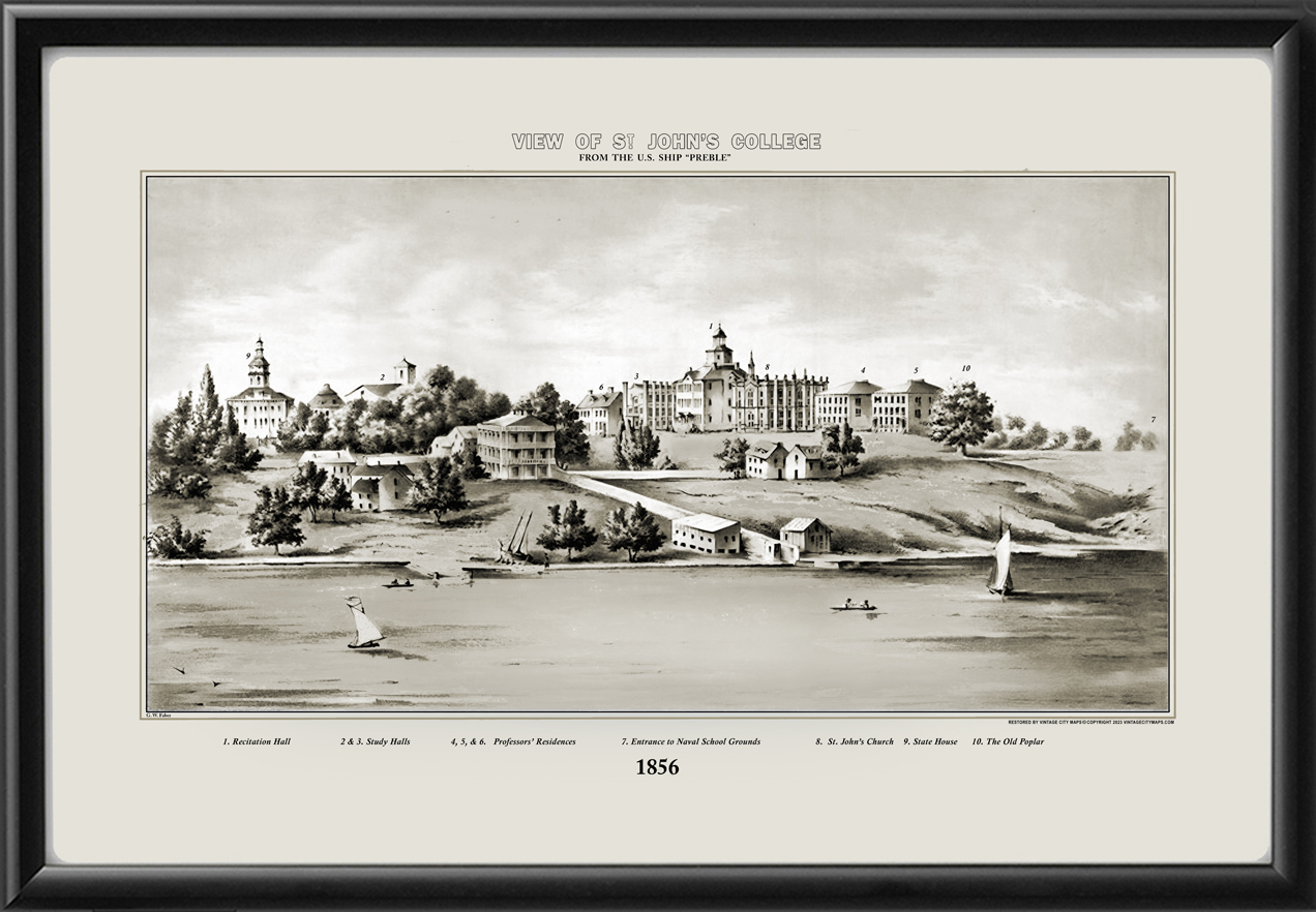 Restored panoramic view of St. John’s College in Annapolis, Maryland, 1856 by G.W. Faber