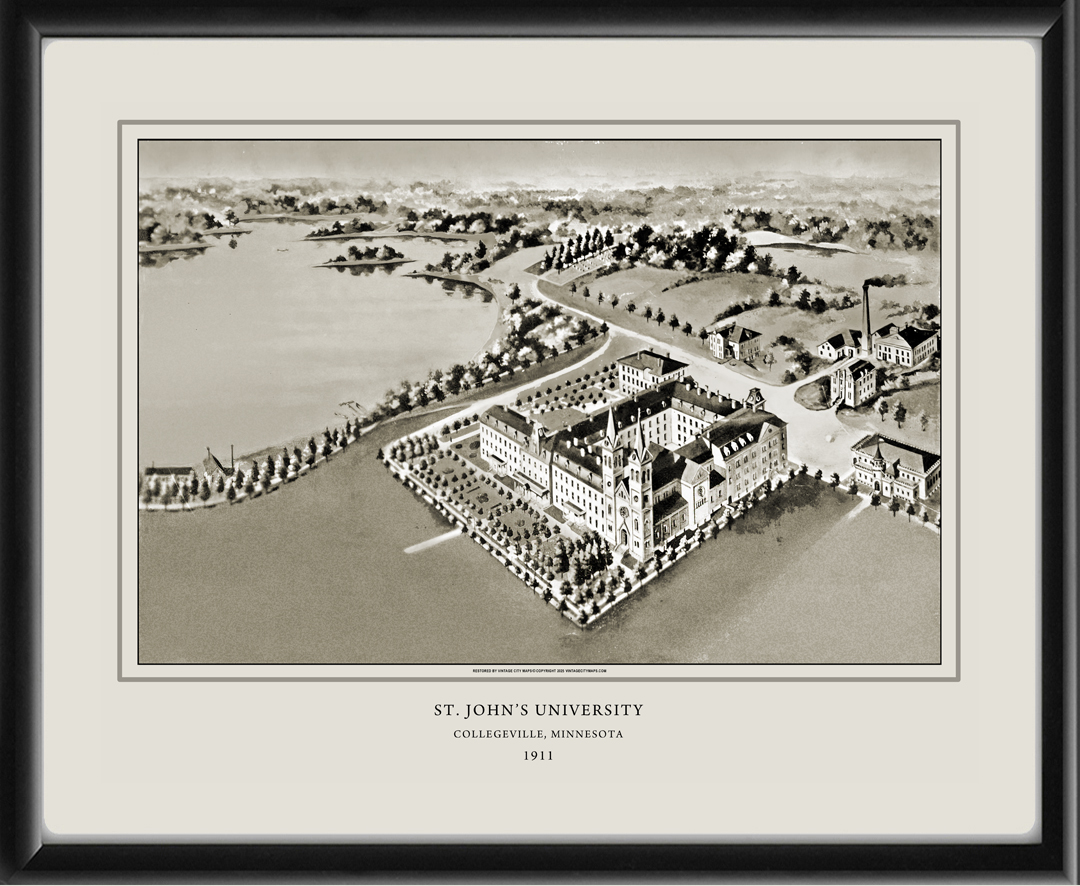 Restored bird’s eye view of St. John’s University in Collegeville, Minnesota, 1911