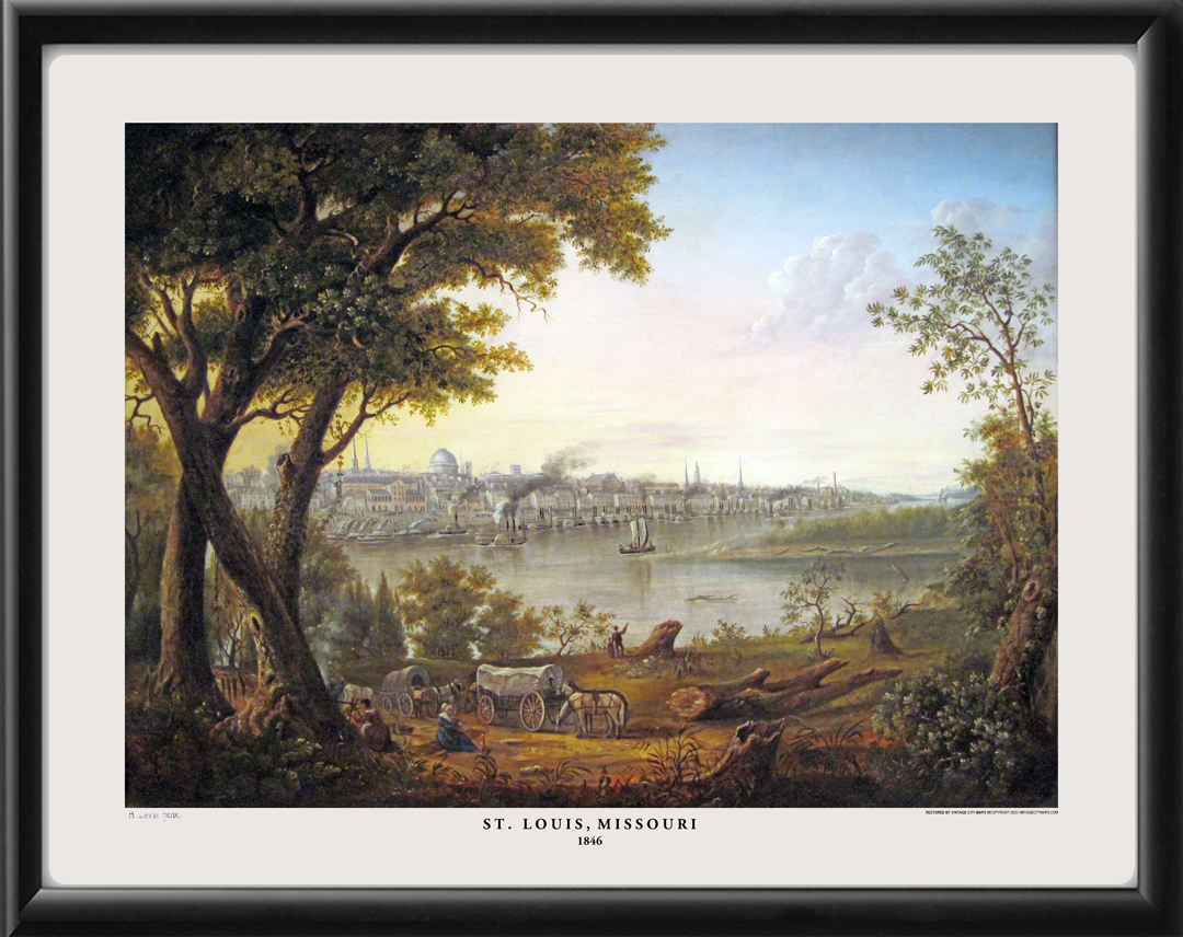 Restored bird’s eye view of St. Louis, Missouri, 1846 by Henry Lewis.