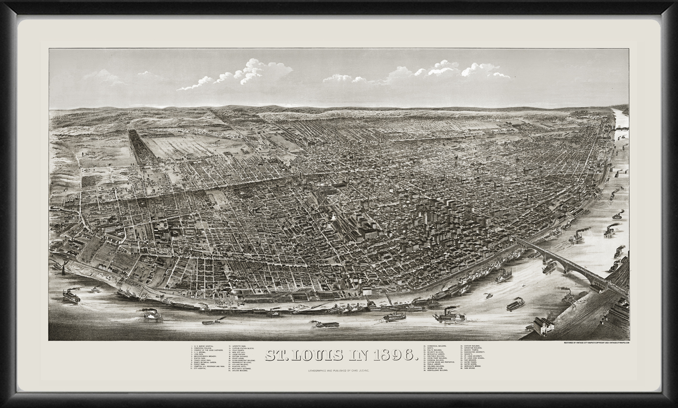 Restored bird’s eye view map of St. Louis, Missouri, 1896 by Charles Juehne.