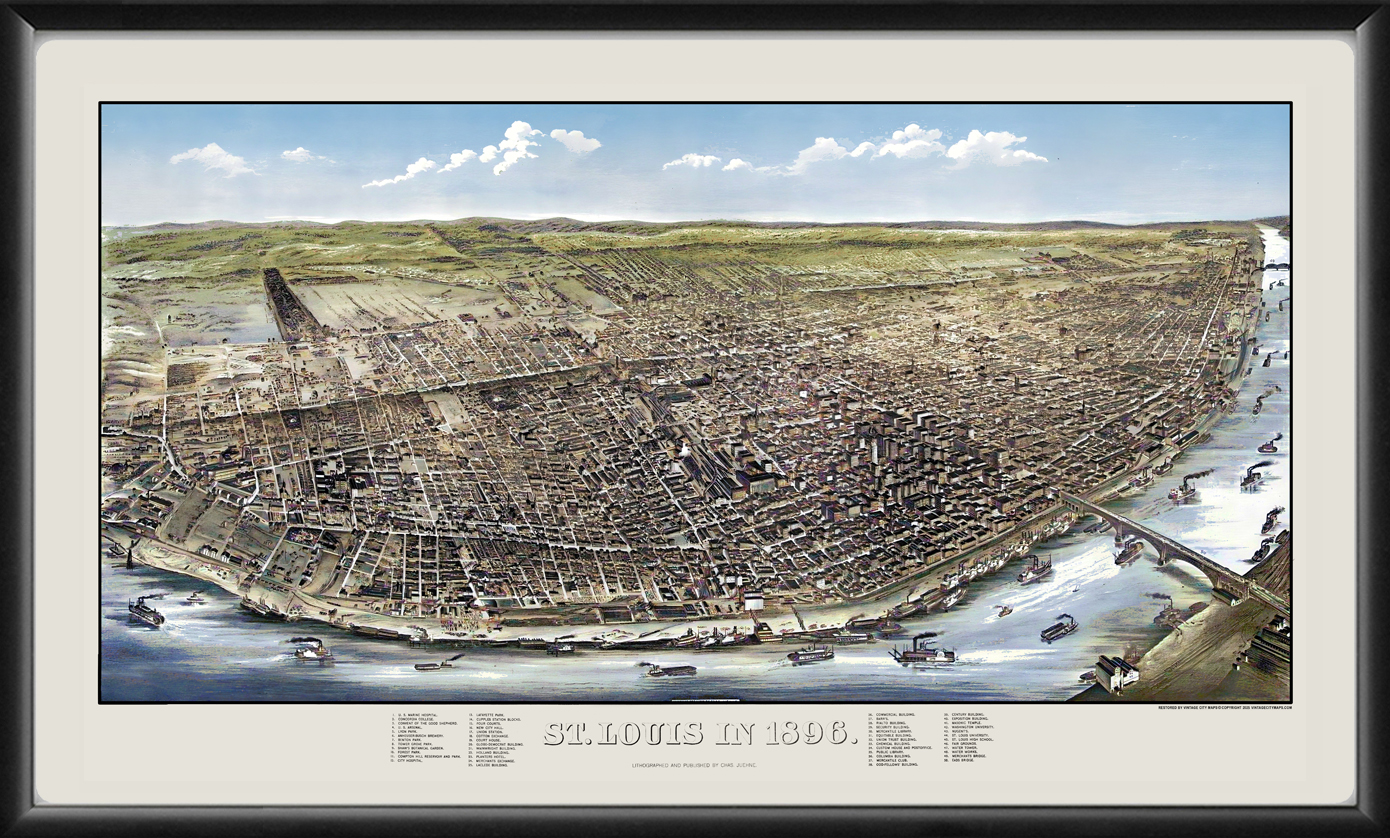 Restored bird’s eye view map of St. Louis, Missouri, 1896 by Charles Juehne.