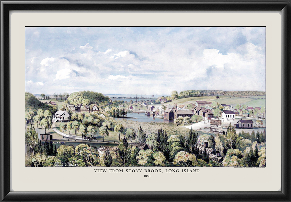 Restored bird’s eye view from Stony Brook, Long Island, New York, 1881 by Edward Lange