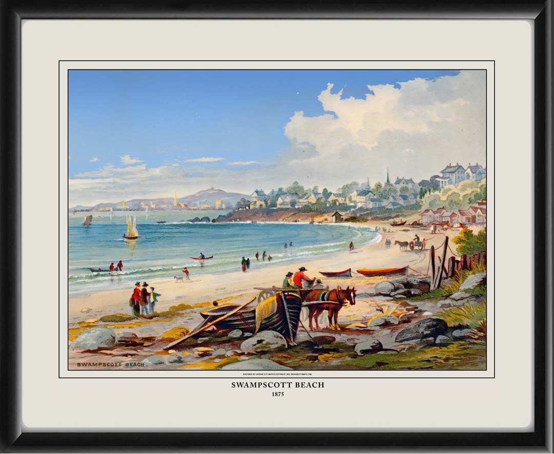 Restored panoramic view of Swampscott Beach, Massachusetts, 1875 by F. M. Knowles