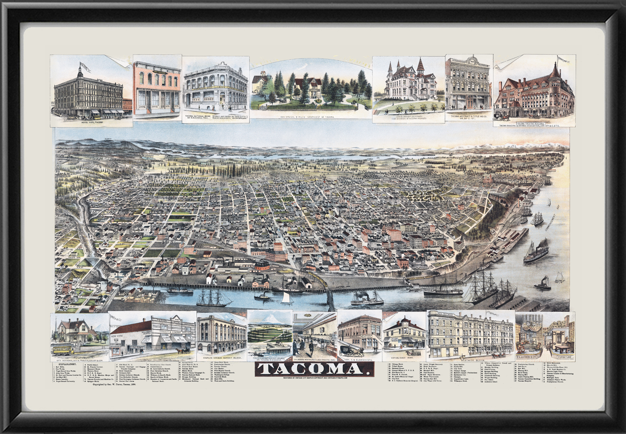 Restored bird’s eye view map of Tacoma, Washington, 1890 by George Traver.