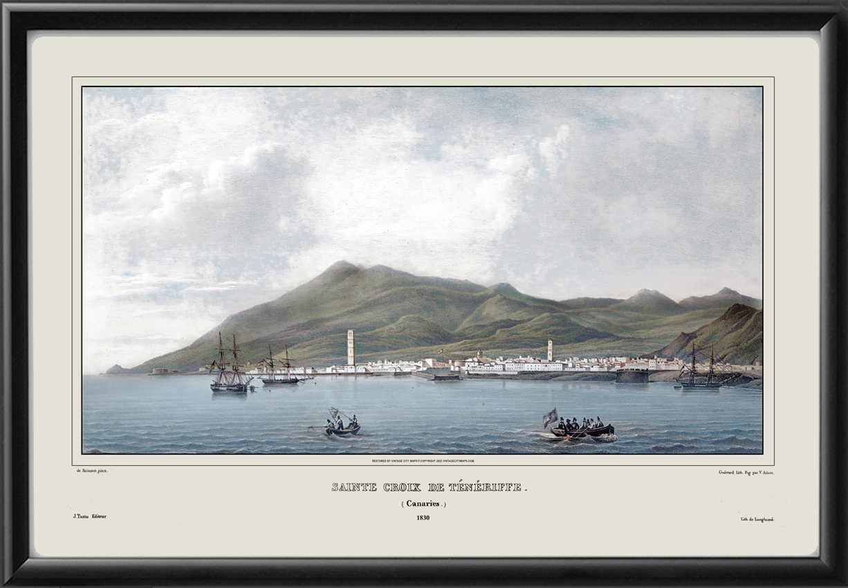 Restored panoramic view of Sainte Croix de Teneriffe (Tenerife), Canary Islands, 1830 by J.S.C. Dumont d’Urville