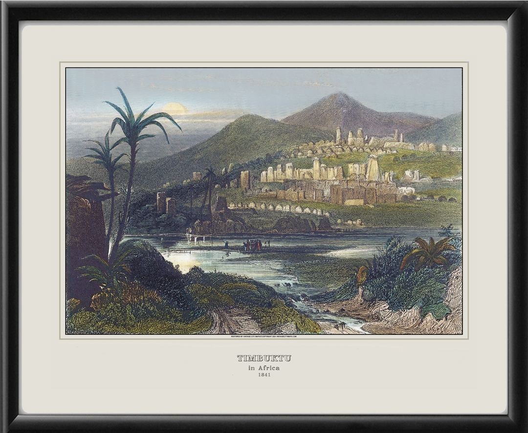 Restored bird’s eye view of Timbuktu, Mali, 1841 from the original engraving by Karl Reiss, and published by Hermann Meyer