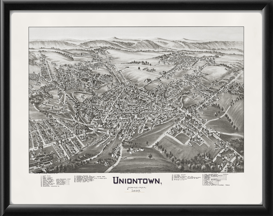 Birdseye view map of Uniontown, PA 1897 by Thaddeus Mortimer Fowler
