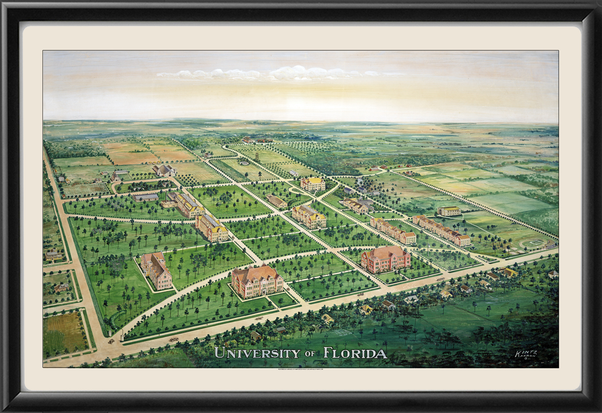 Restored bird’s eye view of the University of Florida in Gainesville, 1916 by Kintz.