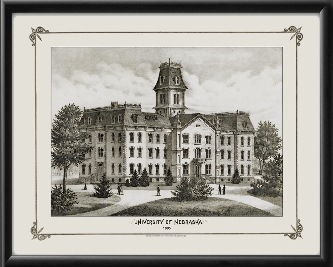 Restored bird’s eye view of the University of Nebraska, Lincoln, 1885 by L.H. Everts