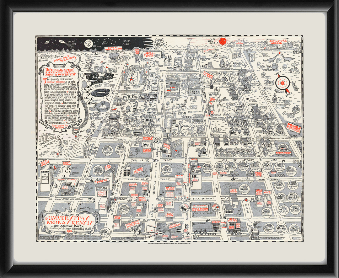 Restored pictorial bird’s eye view campus map of the University of Nebraska, 1931 by James H. Pickering