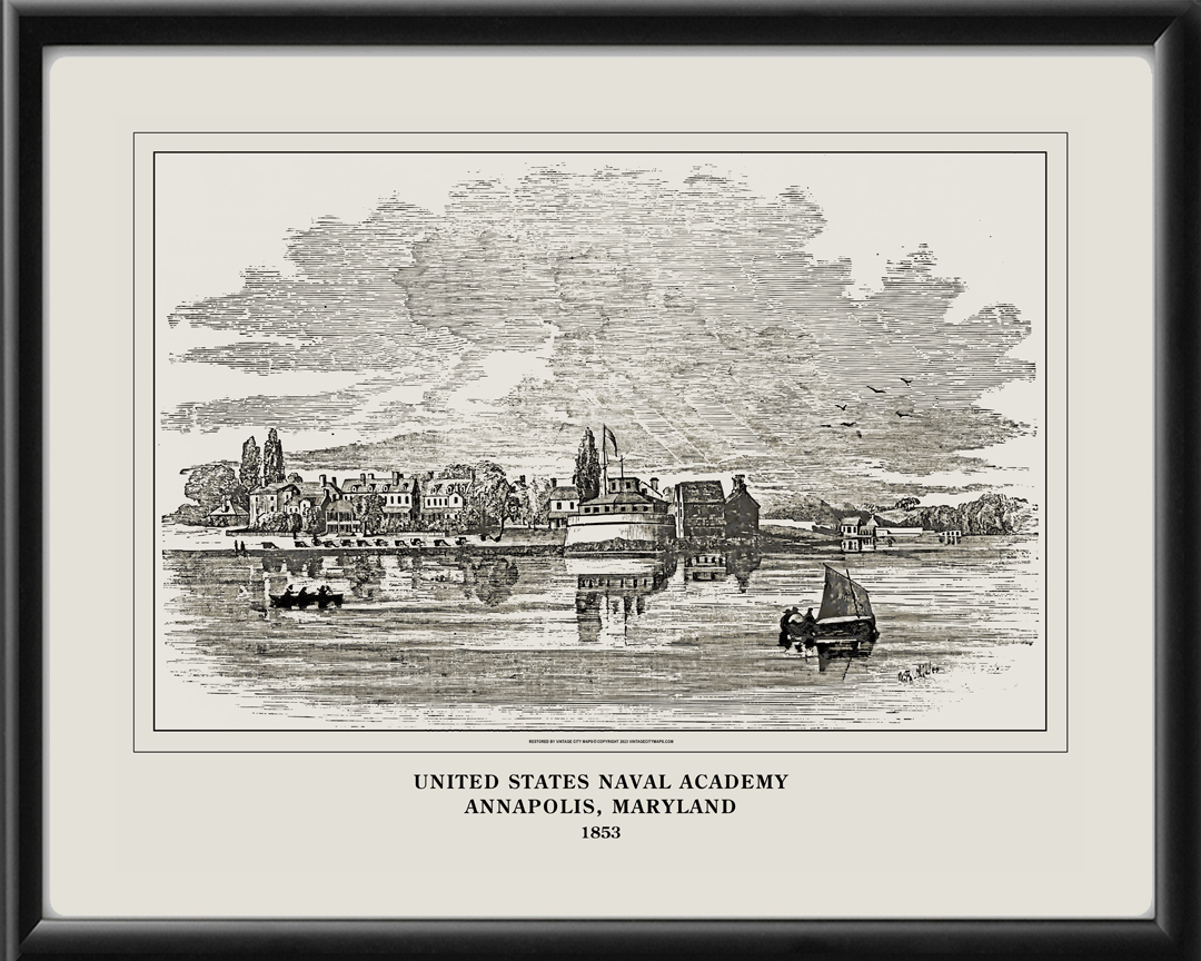 Restored view of the United States Naval Academy in Annapolis, Maryland, 1853 from the original wood engraving after a drawing by William Rickarby Miller