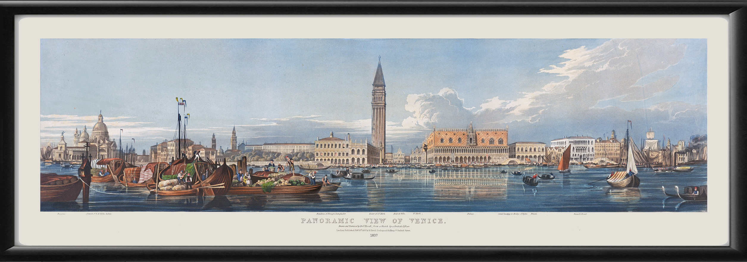 Restored panoramic view of Venice, Italy 1837 by Robert Havell.