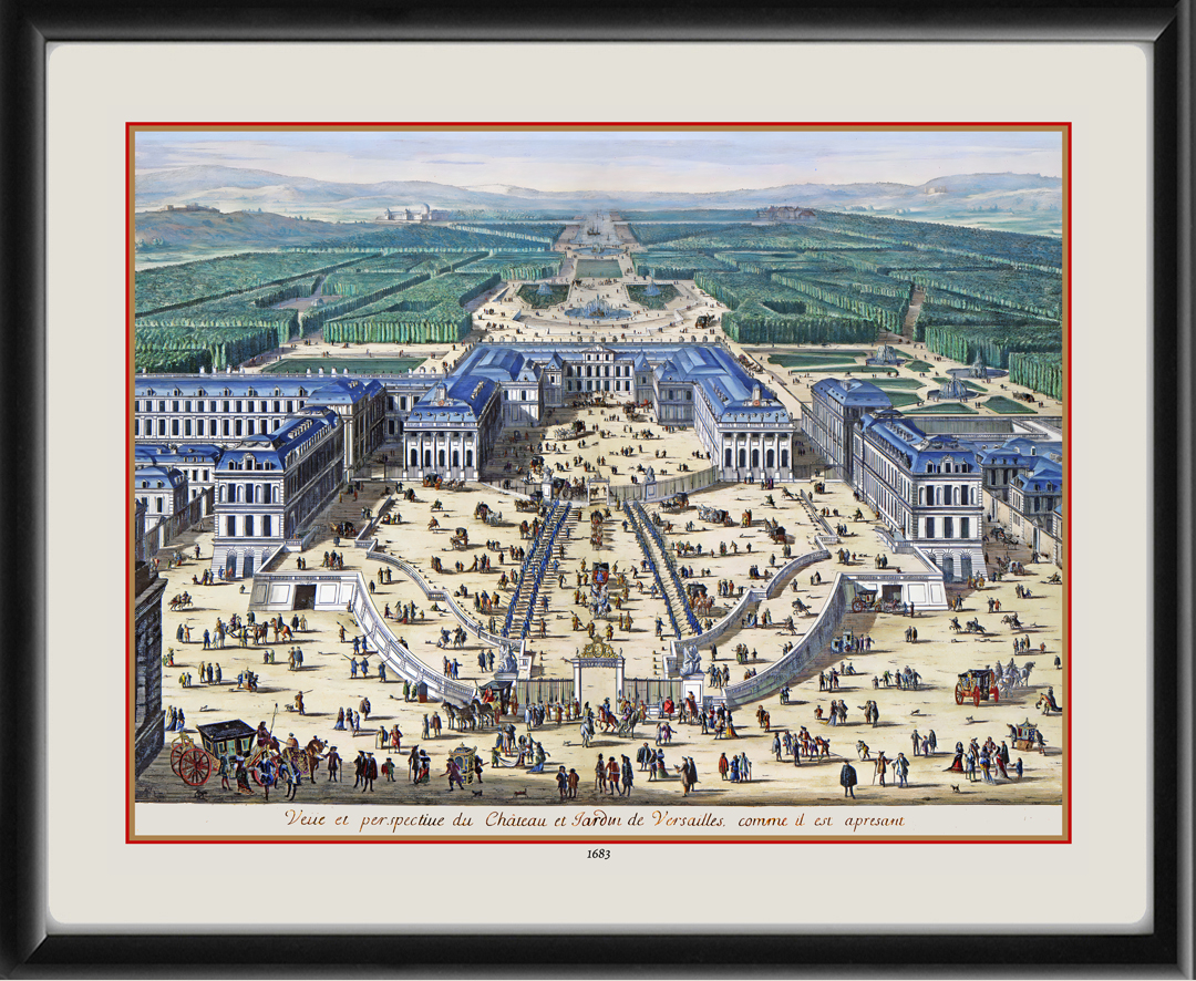 Restored bird’s eye view of the Palace of Versailles and the gardens of Versailles, 1683, by Willem Swidde. Shop our amazing catalog of restored bird’s eye view maps.