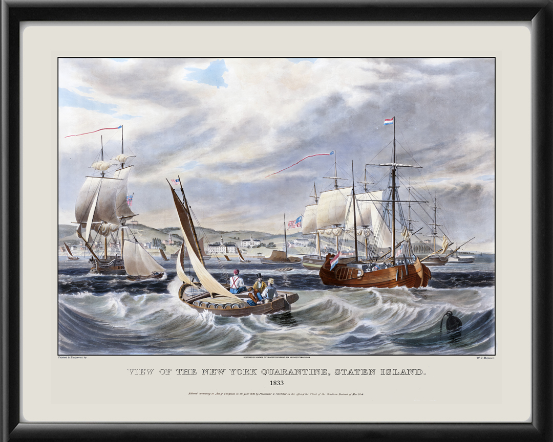Restored view of the Quarantine on Staten Island, New York City, 1833 by William James Bennett