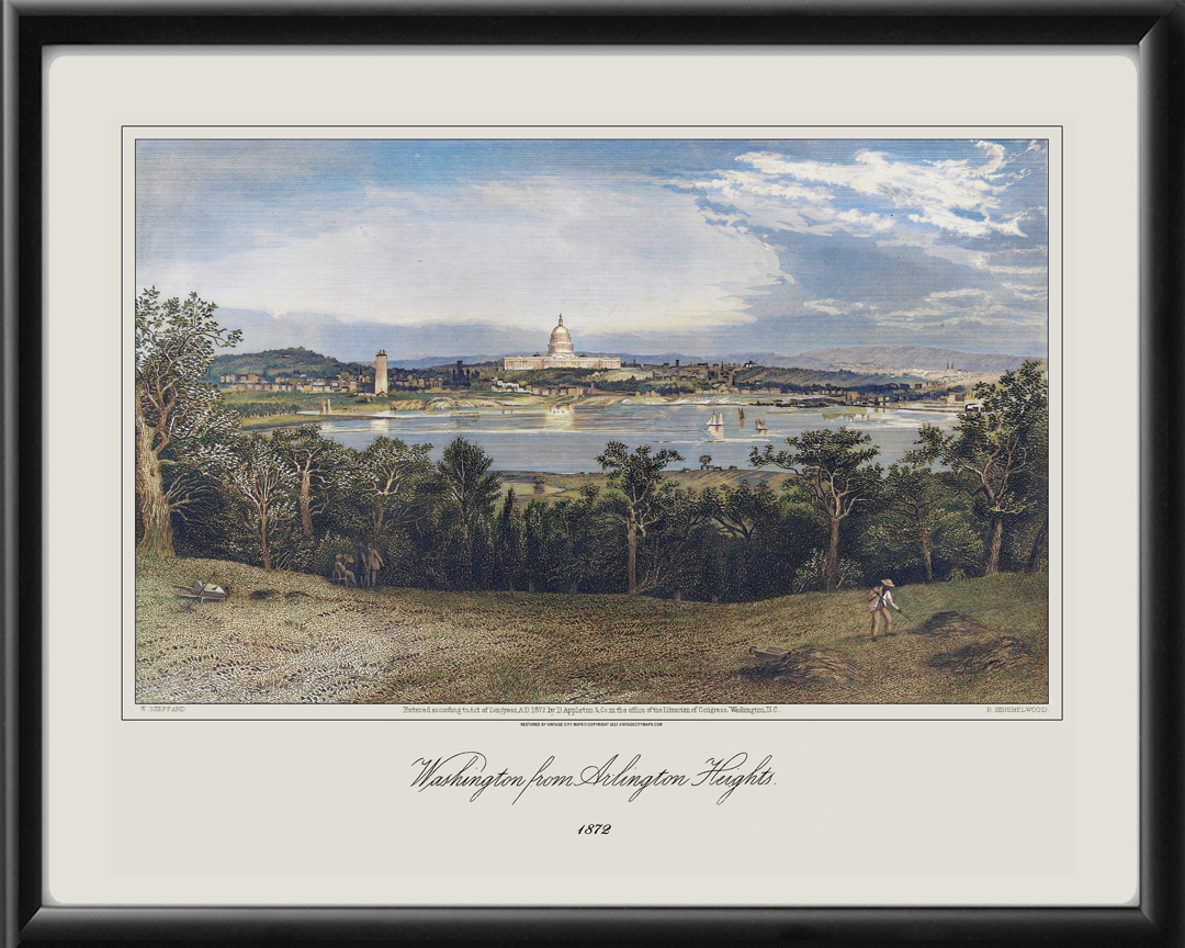 Restored view of Washington, D.C. from Arlington Heights, 1872 by W. Sheppard and R. Hinshelwood