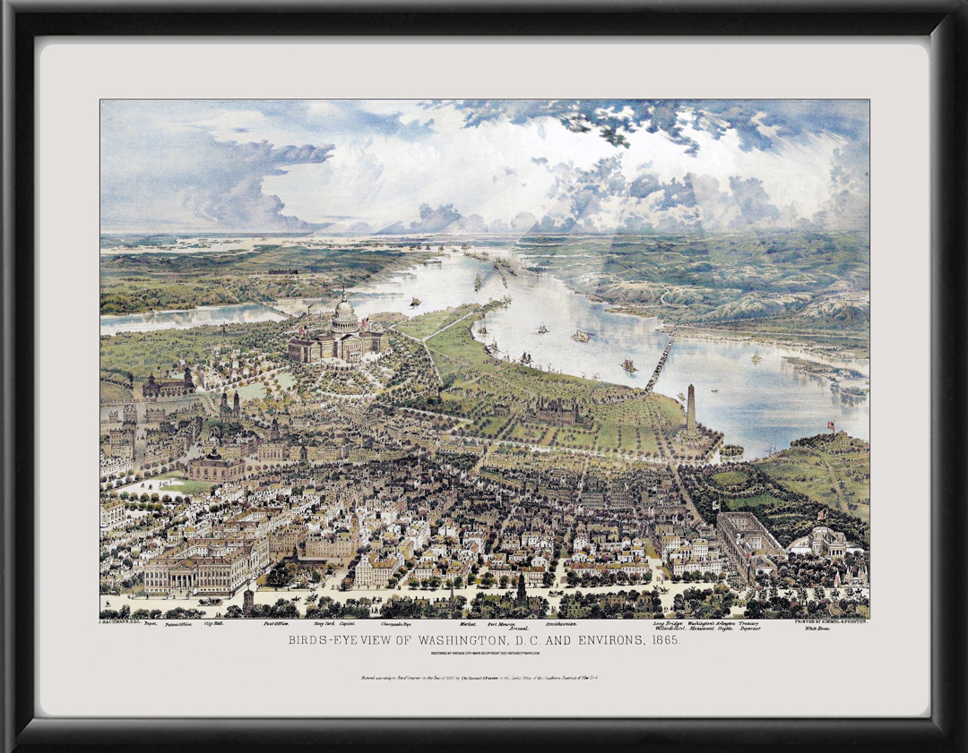 Restored bird’s eye view of Washington, DC 1865 by John Bachmann.