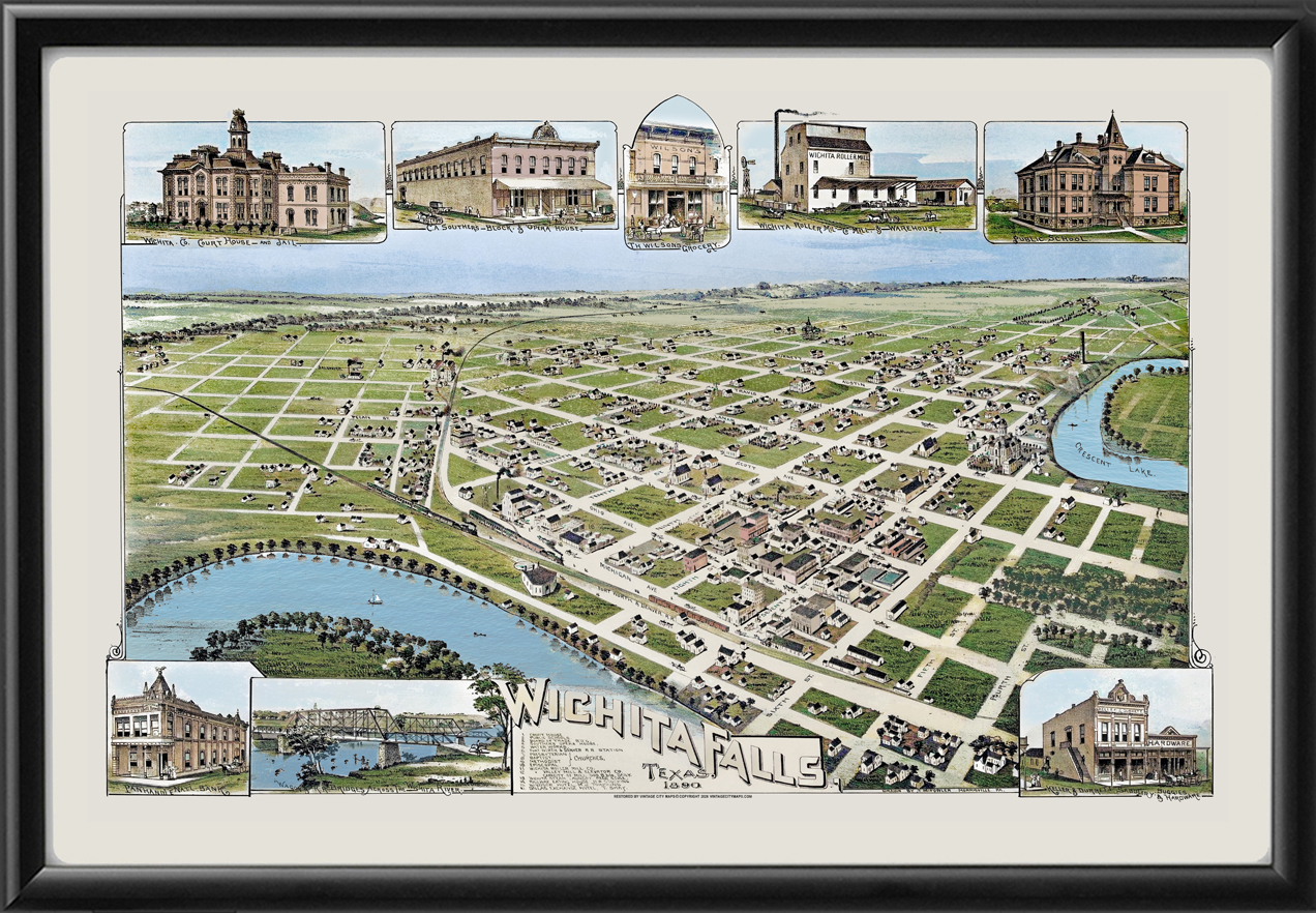 Restored bird’s eye view map of Wichita Falls, Texas, 1890 by Thaddeus Mortimer Fowler