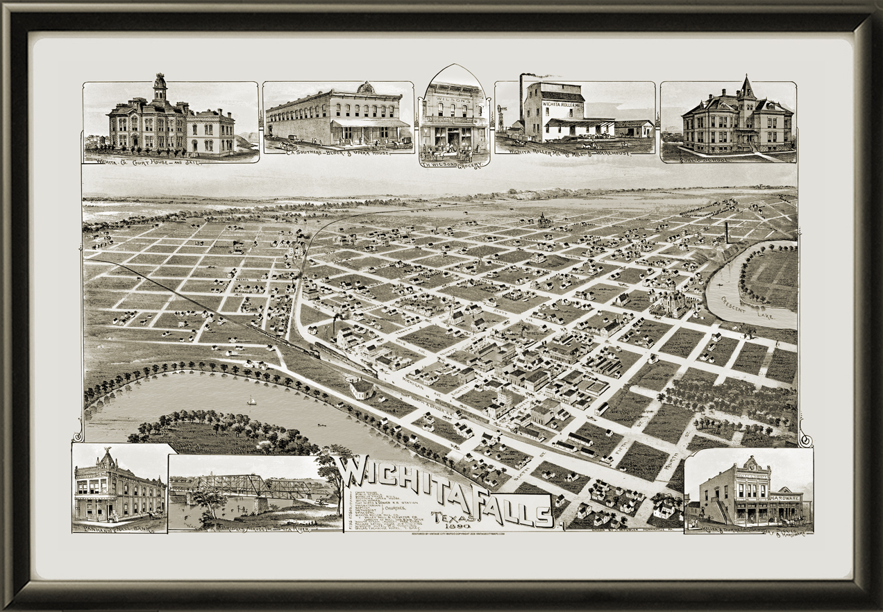 Restored bird’s eye view map of Wichita Falls, Texas, 1890 by Thaddeus Mortimer Fowler