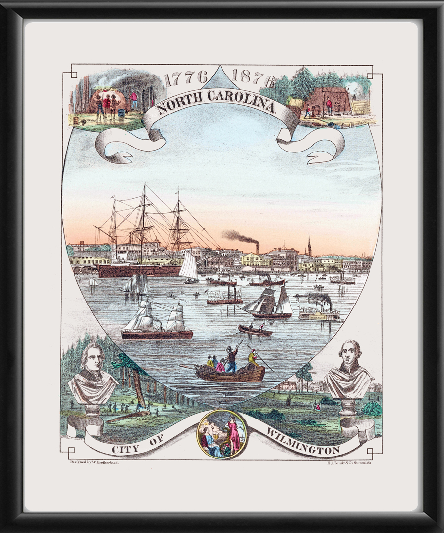 Restored panoramic view of Wilmington, North Carolina, 1776-1876, produced in 1875 by William Brotherhead to commemorate the U.S. Centennial