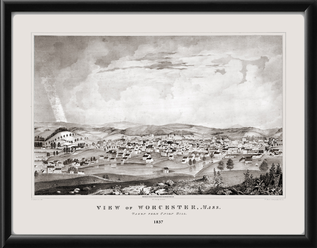 Restored panoramic view of Worcestor, Mass., 1837 by Peder Anderson.