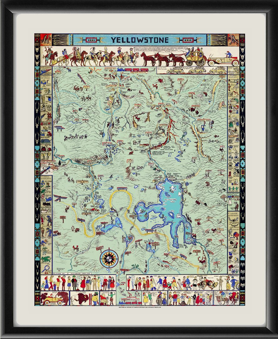 Restored pictorial bird’s eye view map of Yellowstone National Park, Wyoming, 1936 by Jo Mora