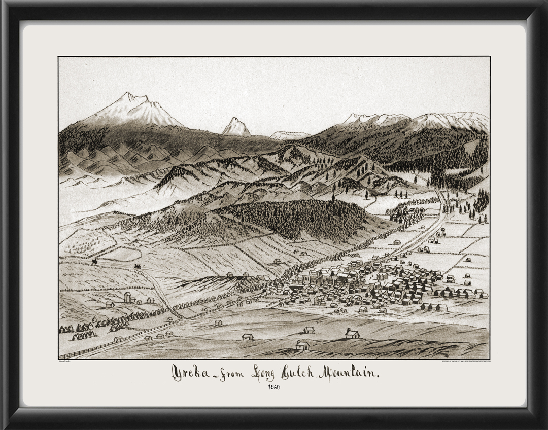 Restored panoramic view of Yreka, California from Long Gulch Mountain, 1860 by Daniel Jenks.